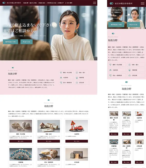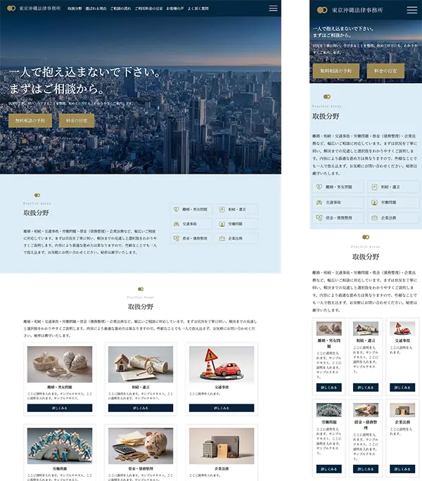 - 弁護士/行政書士/社労士/税理士/コンサル等向け ランディングページ 無料テンプレート tp_professionals1公開。法律事務所でデモ設定していますが、士業(行政書士/社労士/税理士/コンサル等)全般にご利用頂けます。