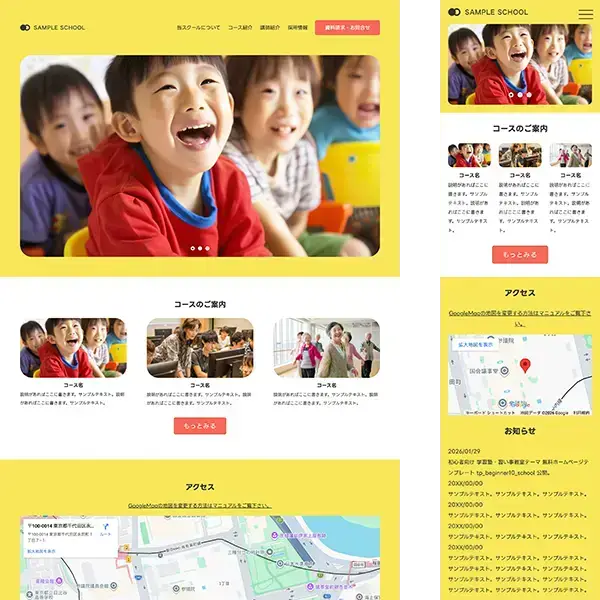 - 汎用デザインの初心者向け無料テンプレート tp_beginner10公開。配布デモでは、企業・カフェ・病院・美容室・居酒屋・ネイルサロン・法律事務所・習い事教室・旅館をテーマに設定。