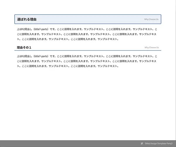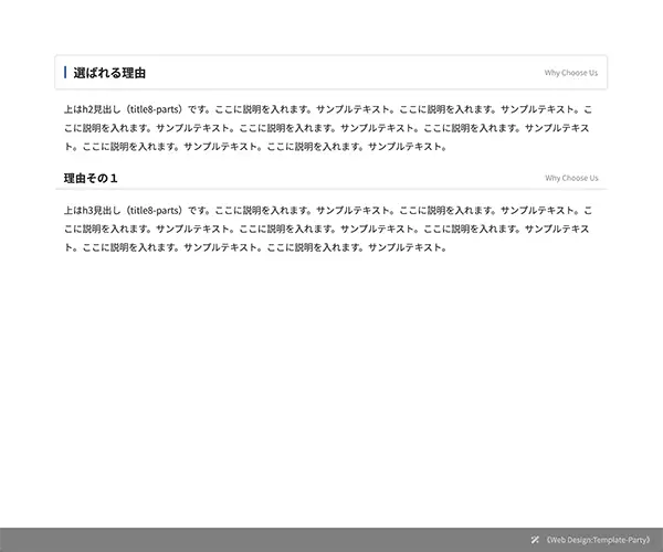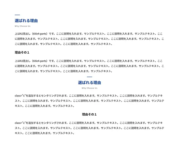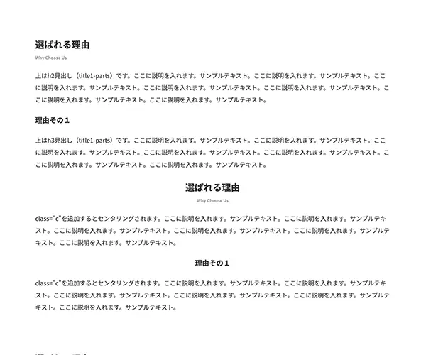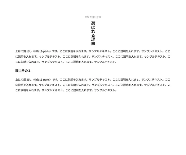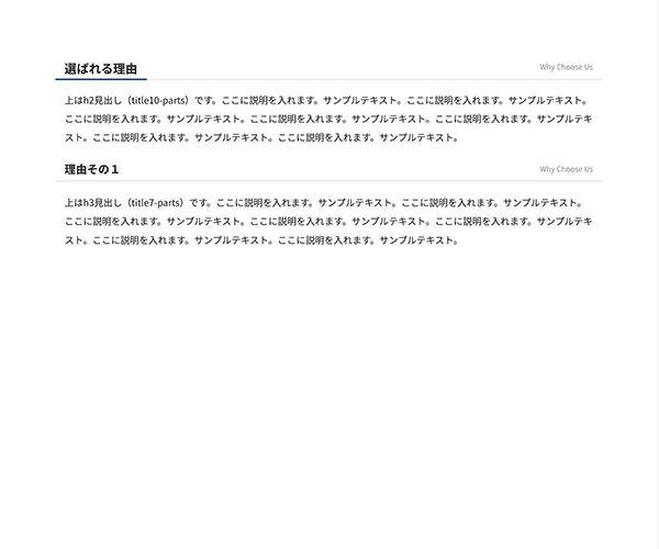 上はh3見出し(title2-parts)です。ここに説明を入れます。サンプルテキスト。ここに説明を入れます。サンプルテキスト。ここに説明を入れます。サンプルテキスト。ここに説明を入れます。サンプルテキスト。ここに説明を入れます。サンプルテキスト。ここに説明を入れます。サンプルテキスト。ここに説明を入れます。サンプルテキスト。